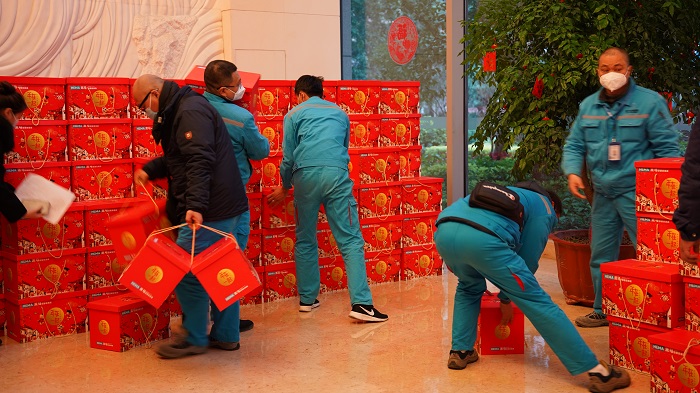兔年將至,備年禮、囤年貨都是必不可少的儀式。一件件代表著公司關懷的年貨堆成一座座小山,承載了公司對每一位員工真摯的問候與祝福,紅色的包裝更為發(fā)年貨現場增添了喜慶、熱鬧的氛圍感。