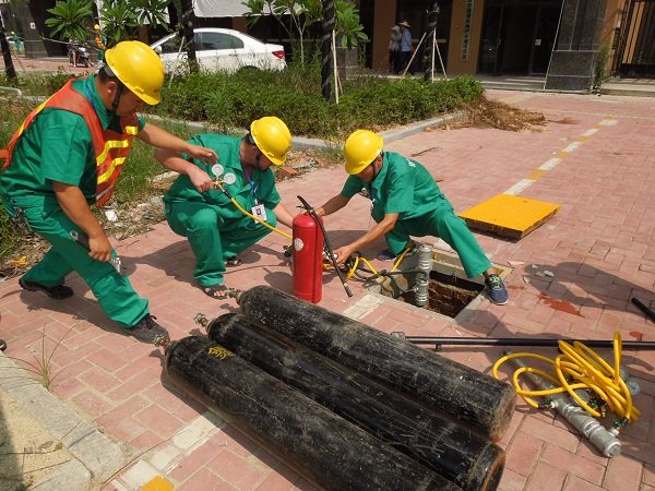 為查找管道燃?xì)馔话l(fā)事故的應(yīng)急預(yù)案中存在的問題,進(jìn)而完善應(yīng)急預(yù)案,提高應(yīng)急預(yù)案的實用性和可操作性,檢查對突發(fā)事故所需應(yīng)急隊伍、物資、裝備、技術(shù)等方面的應(yīng)急準(zhǔn)備情況,發(fā)現(xiàn)不足及時予以調(diào)整補充,做好應(yīng)急準(zhǔn)備工作。曠遠(yuǎn)能源公司于2014年8月22日上午9:30,在秀嶼區(qū)住建局、莆田市燃管處的組織和莆田市宏盛市政工程公司的配合下,在秀嶼區(qū)廣場路豪杰國際公館附近開展管道燃?xì)馔话l(fā)事故應(yīng)急演練。