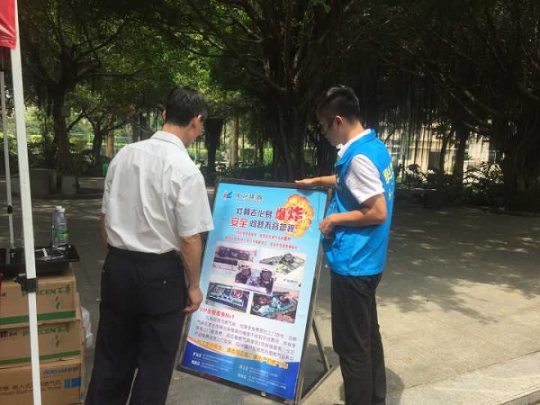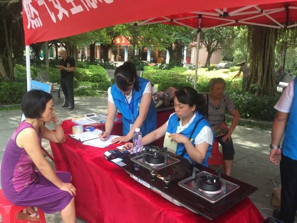 活動期間,現(xiàn)場懸掛了燃?xì)獍踩麄鳁l幅,宣傳人員不僅發(fā)放了燃?xì)獍踩麄鞑牧?,并且提供了現(xiàn)場安全知識講座與咨詢解答服務(wù)。社區(qū)居民積極參與,主動索取宣傳材料,向宣傳人員咨詢安全用氣常識和日常用氣中遇到的各種問題。宣傳人員積極解答、指導(dǎo)居民正確使用管道天然氣的方法和步驟,并重點介紹了對燃?xì)馄骶叩臉?gòu)造、報廢年限、使用注意事項等,還向社區(qū)居民詳細(xì)講解了多種不規(guī)范用氣現(xiàn)象的危害及整改方法,為用戶做了全面的安全用氣指導(dǎo)。