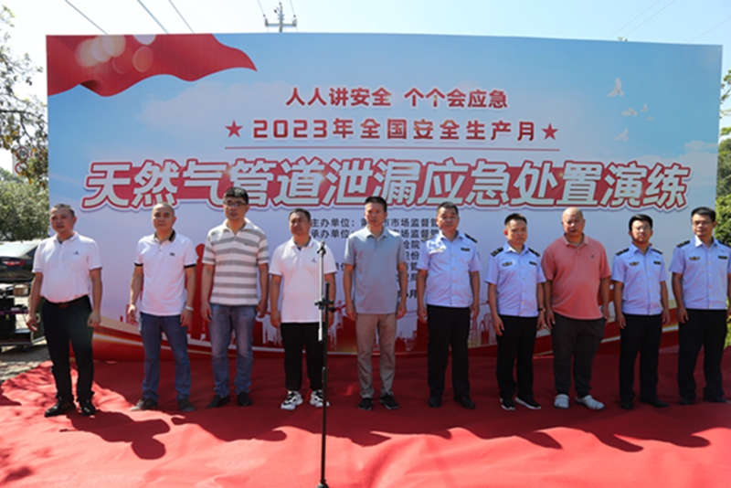 為進(jìn)一步提高應(yīng)對城鎮(zhèn)燃?xì)庑孤┑韧话l(fā)事件的應(yīng)急處置水平,6月28日上午,莆田市市場監(jiān)督管理局、荔城區(qū)城市管理行政執(zhí)法局、莆田市公安局荔城分局、荔城區(qū)市場監(jiān)督管理局、福建省特檢院莆田分院、曠遠(yuǎn)能源股份有限公司在荔城區(qū)新度鎮(zhèn)城港大道旁開展天然氣管道泄漏應(yīng)急處置演練。演練開始,模擬因施工單位挖破管道造成燃?xì)獯罅啃孤?,施工人員立即撥打2652111搶險電話,相關(guān)部門立即啟動天然氣管道泄漏應(yīng)急預(yù)案,搶險搶修組..