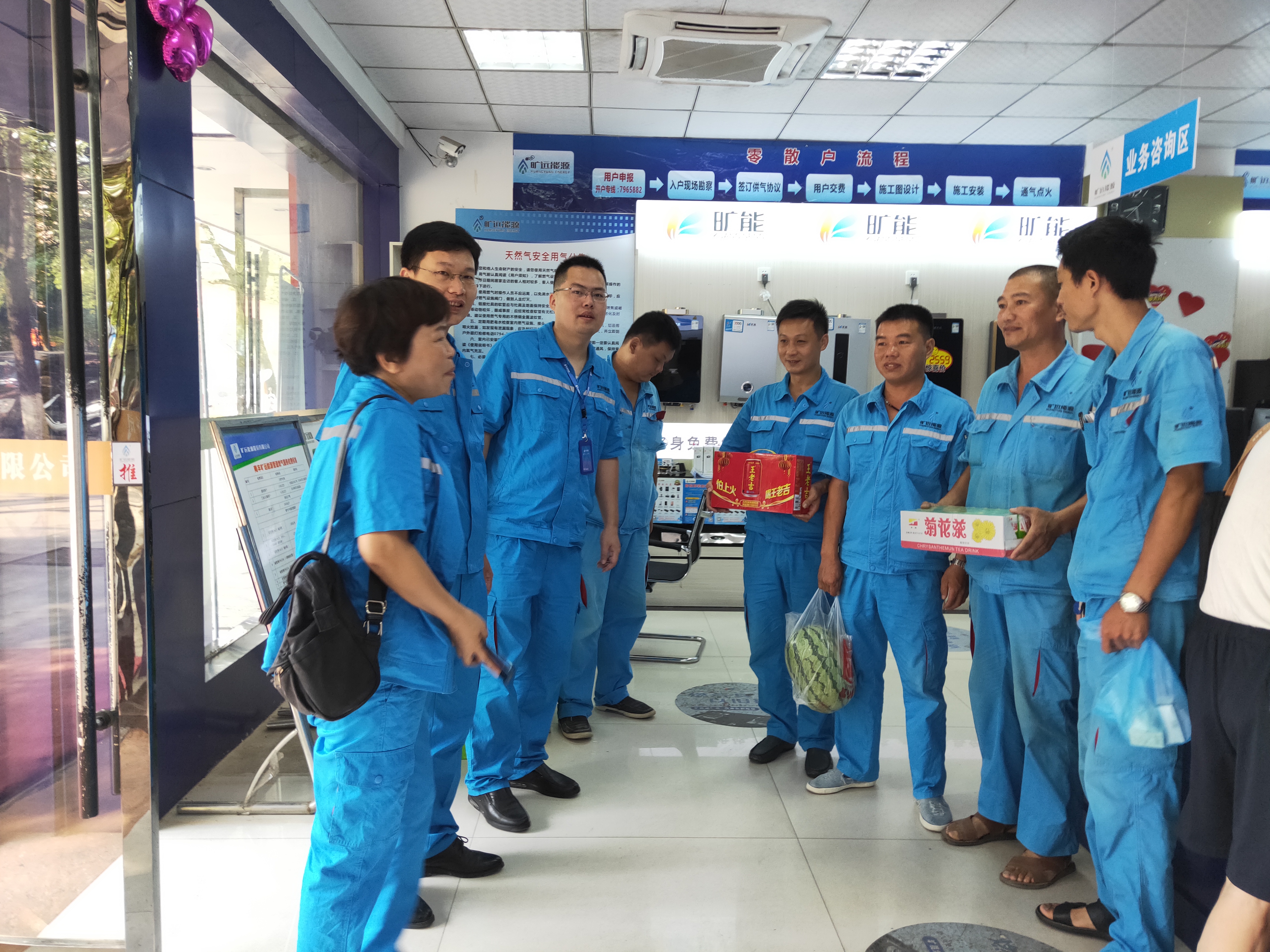 連日來,氣溫節(jié)節(jié)攀升,酷暑考驗(yàn)著堅(jiān)守在一線工作的員工。7月24日下午,上杭曠遠(yuǎn)能源有限公司總經(jīng)理郭明亮、副總經(jīng)理姚東亮等一行來到上杭營業(yè)廳、氣站、施工現(xiàn)場等,親切看望慰問我司一線員工,詢問他們在高溫天氣下的工作情況,并代表集團(tuán)公司對一線員工高溫下堅(jiān)守崗位、辛勤勞作的精神表示感謝,叮囑員工在當(dāng)前持續(xù)高溫的不利條件下,安全做好工作的同時,要注意休息、勞逸結(jié)合,采取有效的防暑措施、安全順利.. 連日來,氣溫節(jié)節(jié)攀升,酷暑考驗(yàn)著堅(jiān)守在一線工作的員工。7月24日下午,上杭曠遠(yuǎn)能源有限公司總經(jīng)理郭明亮、副總經(jīng)理姚東亮等一行來到上杭營業(yè)廳、氣站、施工現(xiàn)場等,親切看望慰問我司一線員工,詢問他們在高溫天氣下的工作情況,并代表集團(tuán)公司對一線員工高溫下堅(jiān)守崗位、辛勤勞作的精神表示感謝,叮囑員工在當(dāng)前持續(xù)高溫的不利條件下,安全做好工作的同時,要注意休息、勞逸結(jié)合,采取有效的防暑措施、安全順利.. 發(fā)布時間:2019-07-30 發(fā)布時間:2019-07-30 瀏覽次數(shù):6891 瀏覽次數(shù):6891